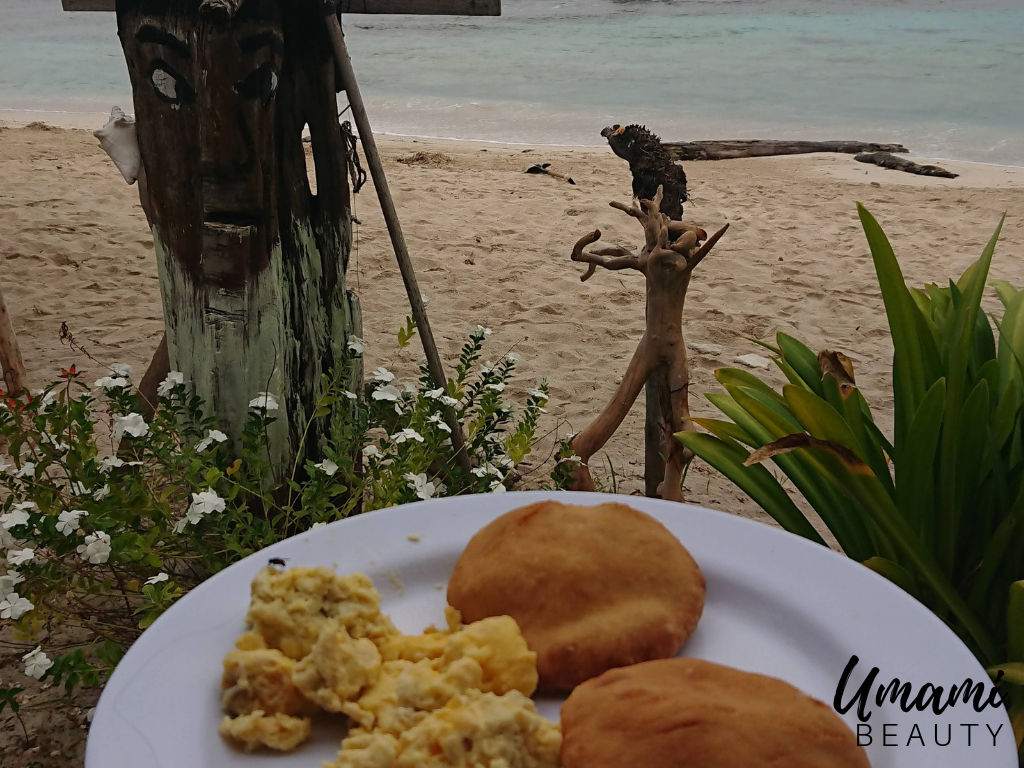 Para desayunar los Kuna nos preparaban tortitas, tortillitas y café con leche. Para comer podíamos elegir entre mariscos (pulpitos, gambas, calamarcitos… ) pescado (el que hubieran pescado esa mañana) o pollo frito con patacones, arroz o patatas y ensalada. El día de la barbacoa se podía elegir también langosta y además daban ensalada de frutas deliciosa.