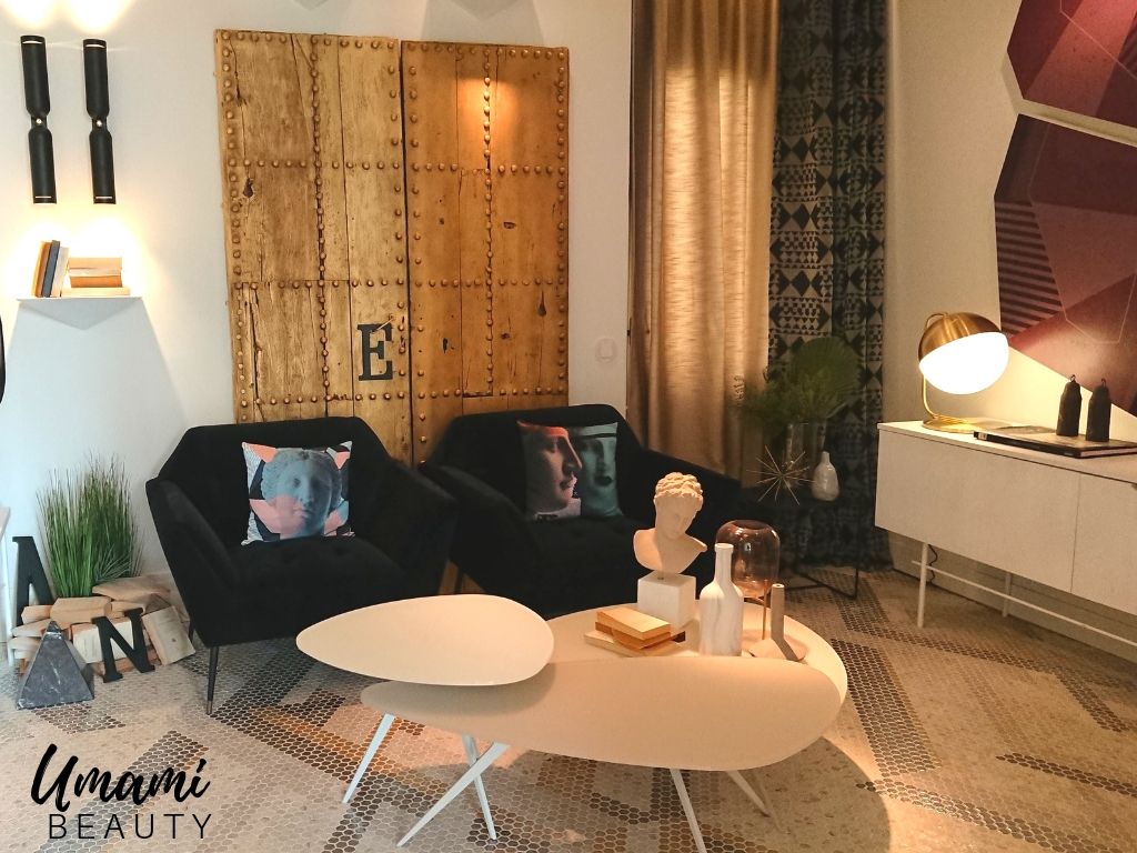 Este salón me parece súper acogedor para leer o tomar algo. Los colores son muy cálidos, tiene un toque muy cozzy. Yo a este salón le añadiría otro sofá de los de siesta enfrente y un hogar al lado. Las maderas pintada de dorado le da un toque diferente y hygge, creo que es la pieza que hace que todo encaje.